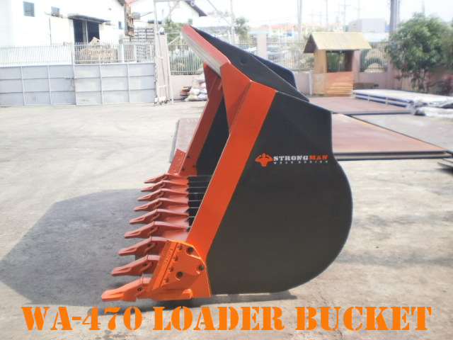 Loading bucket for extra heavy duty work. For use with the heaviest working conditions on rocky and extremely abrasive surfaces. Completely manufactured in special wear resistant steel. Designed with a penetrating profile, it features a wide wear resistant accessories such as delta and semi delta blades, rock teeth, interdental shrouds, internal and external heels, reinforced sides, side protectors etc. which add longevity under extreme working conditions.